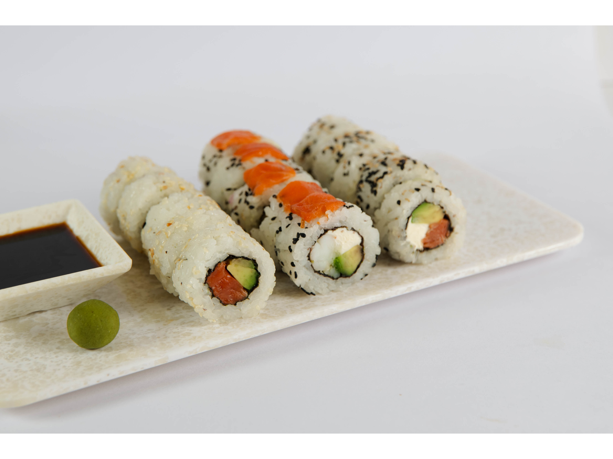 15 Piezas a elección con salsa wasabi y palitos incluidos. Imagen a modo ilustrativo.